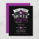 Apresentando as palavras "Apenas um Bunch of Hocus Pocus" em um esquema de cor verde roxo, branco e preto e estilo de tipografia retrô sobre fundo branco, estes convites para festas de Halloween são perfeitos para convidar seus amigos e família! Personalize com os detalhes da festa de Halloween em letras brancas em um fundo preto. As cores podem mudar!