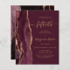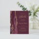 The left-hand edge of this elegant modern 50th anniversary party invitation features a burgundy red watercolor agate border trimmed with faux gold glitter. The customizable text combines gold-colored handwriting, copperplate and italic fonts on a burgundy background. The reverse side features a matching burgundy and gold agate design.