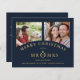 Inexpensive Cheap Christmas Navy Chic Luxury Golden Effect 2 Photos Wedding Save the Date Card with Envelope.