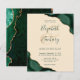 An emerald green watercolor agate design trimmed with faux gold glitter appears in two corners of this elegant design. Personalize it with the couple's names in green handwriting script over a large beige ampersand. Add the wedding details in green copperplate and italic fonts on a champagne beige background. The reverse side features a matching green and gold agate design.