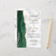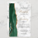 The left-hand edge of this elegant modern wedding invitation features an emerald green watercolor agate border trimmed with faux gold glitter. The customizable text combines gold-colored handwriting and black copperplate and italic fonts on a gray and white marble background. Add additional details on the back, along with a QR code to help your guests visit your wedding website.