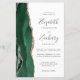 The left-hand edge of this elegant modern wedding invitation features an emerald green watercolor agate border trimmed with faux rose gold glitter. The customizable text combines charcoal gray handwriting, copperplate and italic fonts on a white background. Add additional details on the back, along with a QR code to help your guests visit your wedding website.