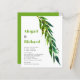 ramificação BUDGET eucalyptus com folhas e código QR para RSVP em convite de casamento de tons verdes. Um design para o seu casamento com um galho em cascata de folhas de eucalipto. A parte traseira é de cor verde e inclui o código QR para que seus convidados digitalizem e respondam.
