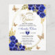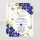 Floral Azul Dourado Tiara Borboleta Mis Quinceañera Convite