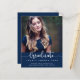 Anúncio de Foto de Script de Graduação Elegante Moderno BUDGET Cartão postal com um script manuscrito da palavra "Formando" em branco sobre um fundo azul clássico de marinho. Adicione facilmente sua própria foto e detalhes para o anúncio perfeito da graduação. Excelente para festas de formando, convites para abrir a casa, ou apenas uma maneira de mostrar o seu formando! **O nosso documento sobre o ORÇAMENTO é mais pequeno e delicado, mas ainda é bonito!** Se precisar de assistência ou de elementos correspondentes, contacte-nos em cedarandstring@gmail.com.