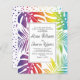 BUDGET A monstera tropical do arco-íris e a palma deixam o convite para casamento de gay e lésbicas com o código QR para RSVP online. Mostra um padrão de folhas tropicais nas cores do arco-íris com contorno de ouro e seu texto em um quadro branco. O verso inclui um padrão colorido de confetti e o código QR. Digitalize para RSVP on-line.