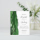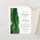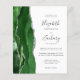 The left-hand edge of this elegant modern wedding invitation features a hunter green watercolor agate border trimmed with faux silver glitter. The customizable text combines charcoal gray handwriting, copperplate and italic fonts on a white background. The reverse side provides spaces for 4 photos (1 square, 2 horizontal, 1 long vertical) and room for your wedding website URL or other information.