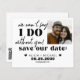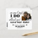 Simple black and white trendy bold typography wedding funny casual engagement photo budget affordable wedding save the date card with a fun "we can't say I do without you" modern handwritten calligraphy script quote.