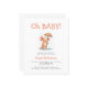 This cute baby shower invitation features a watercolor axolotl holding an umbrella in the rain, below the words "Oh BABY!" in orange hand printing font. Personalize the text with the name of the mom-to-be in orange and the details in charcoal gray sans serif font. The reverse side provides space for diaper raffle, books for baby, and registry details, along with a convenient QR code guests can scan to visit the registry.