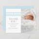 A religious thank you card featuring soft blue stripes and a simple gold cross with photo on the front with soft dark grey thank you type and babies name. The back is intentionally left blank to allow for additional photo(s) or lengthier message. These thank you note cards are perfect for a baptism, confirmation or wedding. They coordinate with the Classic stripe baptism suite by Stacey Meacham found here... http://www.zazzle.com/collections/classic_stripe_baptism-119906052491948400