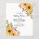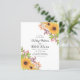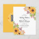 Orçamento Girassóis amarelos e outono deixa convite para casamento no outono com código QR para RSVP. Esta adorável design mostra um buquê de girassóis e folhas de outono e bagas na parte superior direita e botton à esquerda. A parte traseira é de cor amarelo sólido com o código QR.