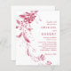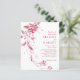 Viva magenta e branca vila floral, código QR BUDGET casamento Convite. Faça seu convite para o casamento memorável e barato com um tema brilhante e branco de terra floral. A vibrante terra magenta é elegantemente mostrada do lado esquerdo, complementada por tipografia clássica para um toque sofisticado e eterno. Para maior conveniência, a parte traseira do convite contém um código QR para RSVP on-line fácil. Melhore seu dia especial com este design de convite bonito e econômico.