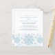 Flocos de neve de cor azul muito elegantes criam uma bonito borda ao longo do final deste convite de aniversário para adultos. A design moderna e minimalista tem uma sensação aberta e arejada. A estética contemporânea apelará a pessoas de todas as idades.