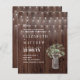 Ponha o tom para a celebração do seu país com estes itens de papelaria de casamento rústicos, com um fundo de madeira quente, luzes brilhantes de cordas e belos jarros de mason. Perfeito para casamentos de celeiros, celebrações ao ar livre, ou cerimônias aconchegantes à noite, esta design rustica cria uma atmosfera acolhedora e romântica. Personalize com seus nomes, detalhes do casamento e informações do evento para artesanato do convite/papelaria perfeito que reflete o seu estilo rústico.