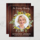 Modern Watercolor Sunflower Floral and Eucalyptus Sympathy Photo Funeral Thank You Cards. These sympathy funeral cards feature a unique photo template in sunflower and eucalyptus greenery wreath,, name and dates, on a rustic wood design. Personalize back with your message of thanks. These memorial sympathy cards are perfect for funeral thank you cards, or celebration of life thank you cards. COPYRIGHT © 2020 Judy Burrows, Black Dog Art - All Rights Reserved. Budget Rustic Sympathy Funeral Thank You Sunflower