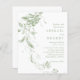 BUDGET Sage convite de casamento floral verde com código QR. Este elegante convite de casamento floral verde de sábio apresenta uma reviravolta moderna com um código QR para RSVP online. A design mostra uma ilustração encantadora da várzea floral no lado esquerdo com detalhes intrincados, criando uma vibração romântica e caprichosa. A fonte tradicional acrescenta sofisticação, perfeita para uma celebração de casamento de classe e na moda. O código QR na parte traseira permite um RSVP digital conveniente, fazer o processo sem problemas e eficiente. Este convite visual e prático atende aos casais modernos que incorporam tecnologia no seu planejamento de casamento.