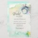 Watercolor painting of a blue crab with aqua watercolors for front and a more abstract background for the reverse.