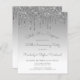 This trendy 25th wedding anniversary surprise party invitation features a sparkly silver faux glitter drip border and silver ombre background. The words "Shhh! It's a Surprise," "25th Anniversary Party" and the names of the couple appear in casual silver gray handwriting script, with the rest of the customizable text in sans serif font. The same silver glitter drip design appears on the reverse side.