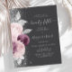 The left-hand edge of this elegant modern 50th anniversary party invitation features a mauve and dusty pink watercolor floral bouquet trimmed with silver foliage and faux silver glitter. The customizable text combines pale silver gray handwriting, copperplate and italic fonts on a charcoal gray background. The reverse side features a matching design.