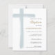 Budget Simple Dusty Blue Cross Boy Baptism Invitation