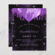 For an elegant Sweet 16, 16th birthday. A stylish black background. Decorated with purple faux glitter and balloons. Personalize and add a name, age and party details. The name is written with a hand lettered style script