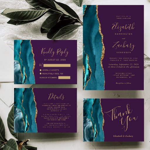 Teal Gold Agate Purple Wedding SuiteCriado por Akhates Designs