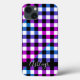 Personalize esta capa de telefone de células de verificação de xadrez roxa, rosa, azul, preto e branco, divertida e colorida, com seu nome ou texto personalizado mostrado em uma fonte de script moderna e moderna e moderna. O estilo, o tamanho e a cor da fonte podem ser alterados clicando na guia PERSONALIZAR MAIS na seção PERSONALIZAR. ASSISTÊNCIA: para obter ajuda com a modificação/personalização do design, a alteração de cor ou a transferência do design para outro produto, entre em contato com o designer ANTES DE ENCOMENDAR através da guia MENSAGEM de Bate-papo Zazzle ou envie um email para makeitaboutyoustore@gmail.com.