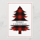Um cartão de cartões de natal simples e giro com tipografia "Feliz Natal". Buffalo Check Pine Tree dá a este cartão uma aparência confortável e fofa.