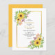 BUDGET Amarelo girassol cor d'água e moldura dourada Convite para casamento floral. Este bonito design apresenta uma moldura dourada e aquarela amarela, girassóis e folhas e bagas nos cantos superior esquerdo e inferior direito e seu texto em ouro e preto.