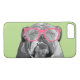 Buldogue com capa de telefone engraçada bonito dos vidros cor-de-rosa