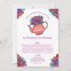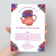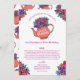 Celebre um aniversário marcante de uma maneira única e sincera com este convite de cartão de aniversário de bule de chá por correio. Este convite elegante inspirado em chá apresenta um bule de chá desenhado à mão adornado com um lindo buquê floral em cores rosadas quentes, definindo o tom perfeito para uma celebração especial à distância. Ideal para quando não é possível se reunir pessoalmente, este convite aos convidados que enviem cartões repletos de memórias, fotos, histórias e mensagens sinceras para a pessoa que faz anos, garantindo que ela se sinta especial no seu grande dia. Você pode optar por reunir os cartões e surpreender o aniversariante ou enviá-los diretamente por correio para uma semana repleta de correspondência alegre. Para maximizar a participação, considere encomendar uma cópia digital para partilhar facilmente o convite por e-mail, mensagem de texto ou redes sociais. Certifique-se de incluir uma data de "envio até" para garantir que todas as cartas cheguem a tempo, e quanto mais pessoas conv