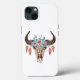 O crânio de touros fabuloso e impresso-leopardo adormecido com flores e penas cria uma bela design ocidental.