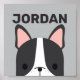 Uma design para animar o seu dia. Este design apresenta uma ilustração fofa de desenho de buldogue francês com nome personalizado no estilo de fonte sans serif moderno da cinza em fundo de cinza de luz. Uma decoração personalizada para bebês e meninas.