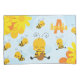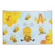 Adicione um toque fofo ao seu quarto ou berçário com este adorável conjunto de travesseiros de abelhinhas. O set apresenta abelhas felizes, uma com mel, e as outras zunindo. Há também flores amarelas e laranja e um fundo azul macio. No canto há um lugar para o primeiro nome do seu filho e inicial de monograma. Este conjunto de travesseiros funciona bem para meninos e meninas e é excelente para chás de fraldas, aniversários e feriados.