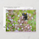 Este cartão-postal mostra uma forragem de abelhão no meu jardim na Dinamarca. As espécies de abelha e de planta estão documentadas no verso.