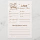 Capture sweet memories with this Baby Predictions and Advice Card. Guests can guess baby details and leave loving notes, all framed in a warm rustic bun-in-the-oven design.