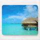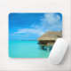 Mousepad com um bungalow do overwater da lua de mel em um recurso luxuoso na lagoa azul clara da ilha do Pacífico de Bora Bora, perto de Tahiti no arquipélago de Polinésia francesa.