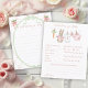 The Predictions for Baby and Baby Well Wishes game features a sweet watercolor clothesline strung across the top, proudly displaying tiny, adorable items, each featuring a cute bunny dressed in pink, with baby prediction questions and a space with advice for the parents to be. The back includes a space for Well Wishes for Baby with a hand painted frame of a crisp pink ribbon pattern accented with a lush light green ribbon wreath, with a darling pink bow holding a bunch of fresh carrots all rendered in a soft watercolor style. Choose this fun activity which then becomes a special keepsake, every detail is crafted to be saved, tucked away in a baby book, and treasured for you and baby to remember the love of family and friends as he grows.