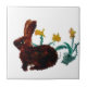 Para a natureza e amantes de os animais com um coelho castanho giro sentado entre as flores daffodil. Um design de Primavera da minha pintura de vidro original, Annabel Potter