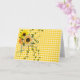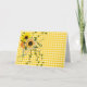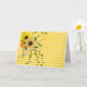 Buquê de girassol amarelo com mariposa e inseto de senhora em fundo de colcha de gingham para cartão de nota de vazio