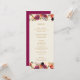 Florais de cor d'água de borgonha e pêssego com sotaques dourados adornam esses menus, perfeitos para casamentos românticos de verão ou outono, botânicos, de boho.