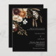 Um fundo preto decorado com florais cor de laranja, cor de cor bege e-poeirenta escuro. Personalize e adicione seus nomes e detalhes. 1 folha = 1 convite impresso de borda a borda.