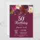 Burgundy Floral 50º Convite de aniversário para mulheres. Burgundy Red Festa de aniversário Convide. Flor Floral de Aquarela Burgundia. 13 15 de 16º 18º 20 21rua 30 de 40º 50º 80 de 60º 70 de 100º. Para mais personalização, clique no botão "Personalizar" e use nossa ferramenta de design para modificar este modelo.