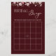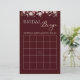 Burgundy Floral Bridal Bingo Game Card