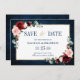 Marinho vermelho-escuro com cruz de aquarela, cor-de-rosa, salve o modelo do cartão de data com quadro Dourado e a inscrição do ouro com folhagem botânica verde e folhas de eucalipto em fundo azul-marinho. Esta design fácil de personalizar pode combinar facilmente com as cores do casamento, estilos e temas e é uma escolha perfeita para o meio do outono ou casamentos no inverno. Você pode encontrar mais designs correspondentes na minha loja ou entrar em contato comigo se precisar de ajuda na personalização do design.