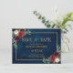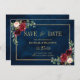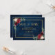 Marinho vermelho-escuro com cruz de aquarela, cor-de-rosa, salve o modelo do cartão de data com quadro Dourado e a inscrição do ouro com folhagem botânica verde e folhas de eucalipto em fundo azul-marinho. Esta design fácil de personalizar pode combinar facilmente com as cores do casamento, estilos e temas e é uma escolha perfeita para o meio do outono ou casamentos no inverno. Você pode encontrar mais designs correspondentes na minha loja ou entrar em contato comigo se precisar de ajuda na personalização do design.
