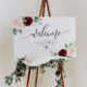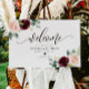 Sinal de boas-vindas floral da Burgundy, sinal de boas-vindas de ouro, sinal de boas-vindas de casamento, sinal impresso, modelo, sinal de evento, placa de porca, casamento elegante, casamento gibi, casamento dourado, coração dourado, sinal de boas-vindas caligrafia, sinal de boas-vindas de casamento caligrafia