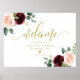 Sinal de boas-vindas floral da Burgundy, sinal de boas-vindas de ouro, sinal de boas-vindas de casamento, sinal impresso, modelo, sinal de evento, placa de porca, casamento elegante, casamento gibi, casamento dourado, coração dourado, sinal de boas-vindas caligrafia, sinal de boas-vindas de casamento caligrafia