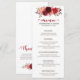 Burgundy Marsala Rosas vermelhas Floral Menu