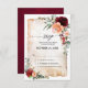Cartão de RSVP Burgundy Peach Burnt Orange com um buquê elegante de flores de rosa nas cores burgundy, vermelho, Marsala, grená, pêssego, salmão, coral e blush, além de folhas de eucalipto verde-sage. E textura de pergaminho com efeito de aquarela desgastada. Por favor, entre em contato comigo para qualquer ajuda na personalização ou se você precisar de qualquer outro produto com este design.